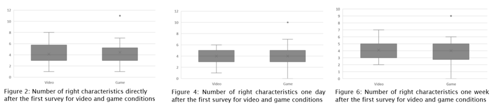 The results show no significant difference in the ability to recall visual character details between both media. Further studies are required to determine if this is due to a fault in the experiment design and which types of memory are influenced similarly by games and videos.
